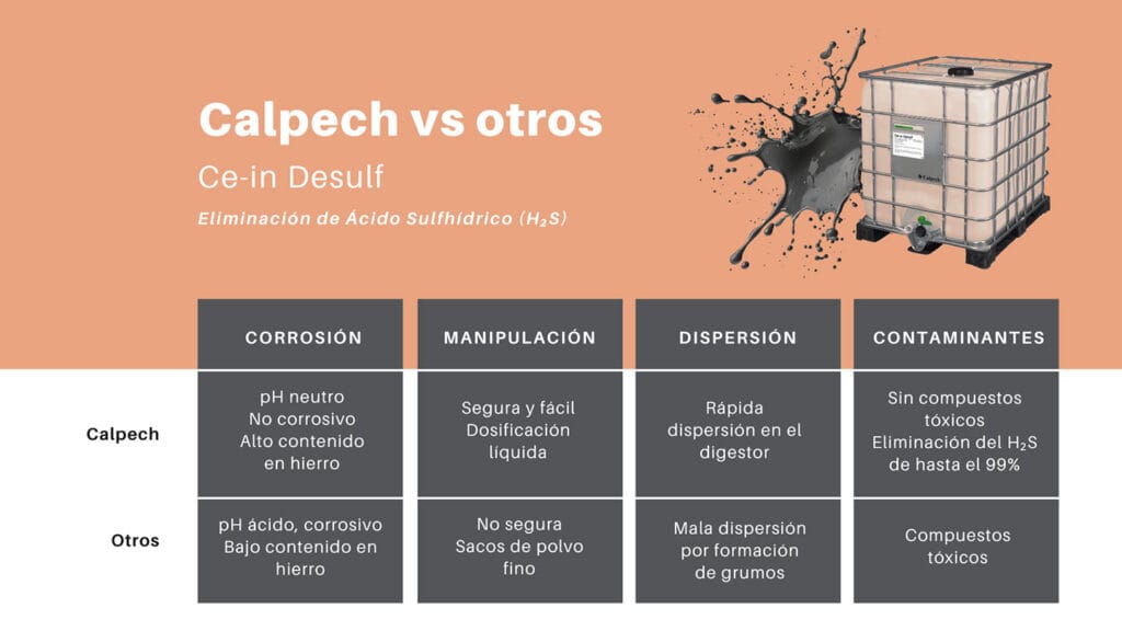 Cein-Desulf is designed to effectively reduce hydrogen sulfide (H₂S) content in anaerobic digesters up to 99%.